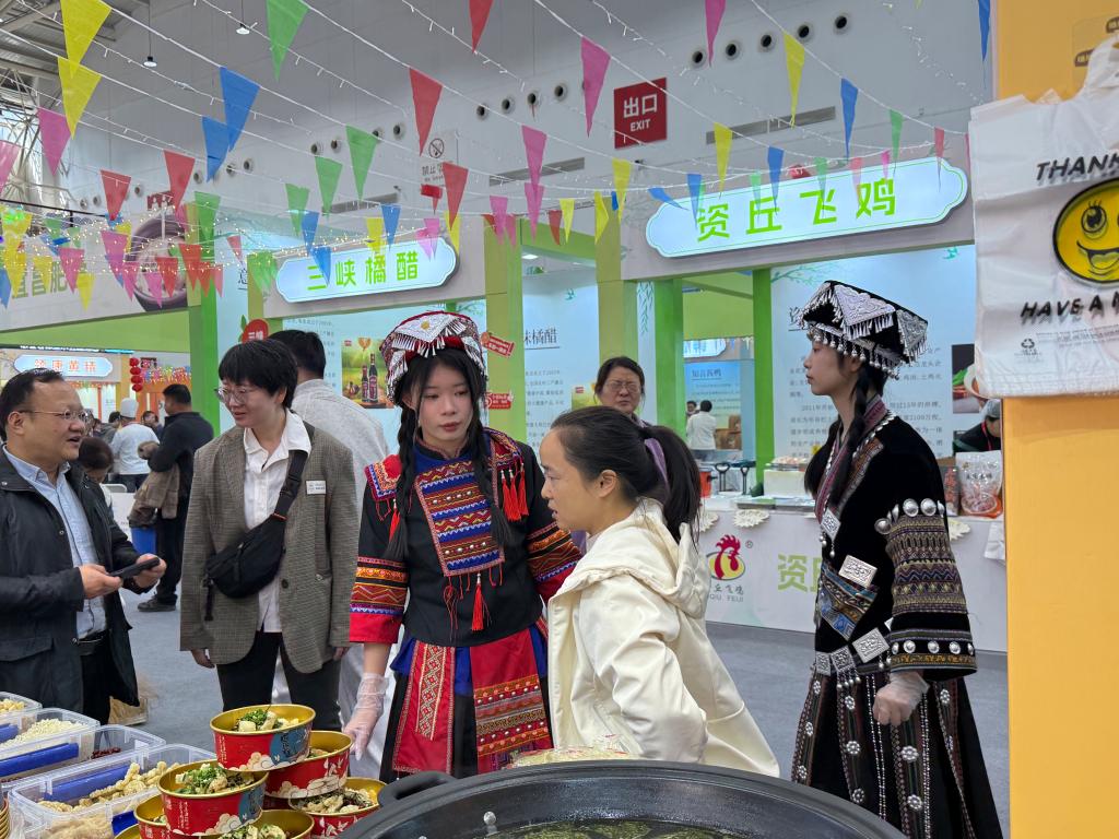 镜头前,电子商务专业员工谭涛身着土家盛装侃侃而谈,将油茶汤的非遗传承故事与高山绿茶、手工炒米的原料优势娓娓道来。面对网友“冲泡是否方便”“是否适合送礼”等提问,他应答自如,用接地气的表达拉近与消费者的距离,直播间互动热度持续攀升。摊位另一侧,员工柯宝玉、魏依伶服务同样细致贴心。“这是省级非遗美食,配料干净健康,老人小孩都能放心喝”“来尝一尝刚冲泡的,土家风味特别醇厚”,两人分工协作,用真诚服务打动每一位参观者,让驻足的人流变成实实在在的消费力。