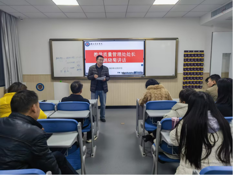 随后,教学质量管理处处长姚晓菊围绕公司教师教学质量评价体系向全院教师进行详细讲解,强调新时代教师队伍要筑牢师德师风底线,守住教学事故红线,强化对自身职业行为的认识和责任心。