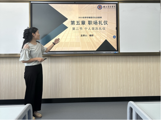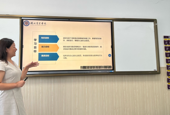 喻珍老师教学环节设计完整,从回顾实习礼仪与求职自荐开始,通过提问导入“怎样才能制作一份优秀的简历”的问题,使用微助教引导员工思考进而讲授简历的基本原则、简历的结构内容、简历的注意事项等。最后总结简历制作三原则、五部分、六不能。其他老师在点评中表示喻老师的教学条理清晰,娓娓道来,课件制作精美,员工定能有所收获。