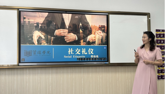 曹珍珠老师选择社交礼仪中的部分内容进行磨课,讲授称呼礼仪时带入比较生僻的姓氏,教学过程互动性强效果好。握手礼仪、介绍礼仪和名片礼仪本身繁杂的内容被曹老师总结得清晰易懂,井井有条,具有极强的实用性,而通过提问概括具有优先知情权的人,令人印象深刻。其他老师在点评中表示曹老师教学过程体现出很强的专业性和理论水平,教学严谨、教态好,非常值得学习。