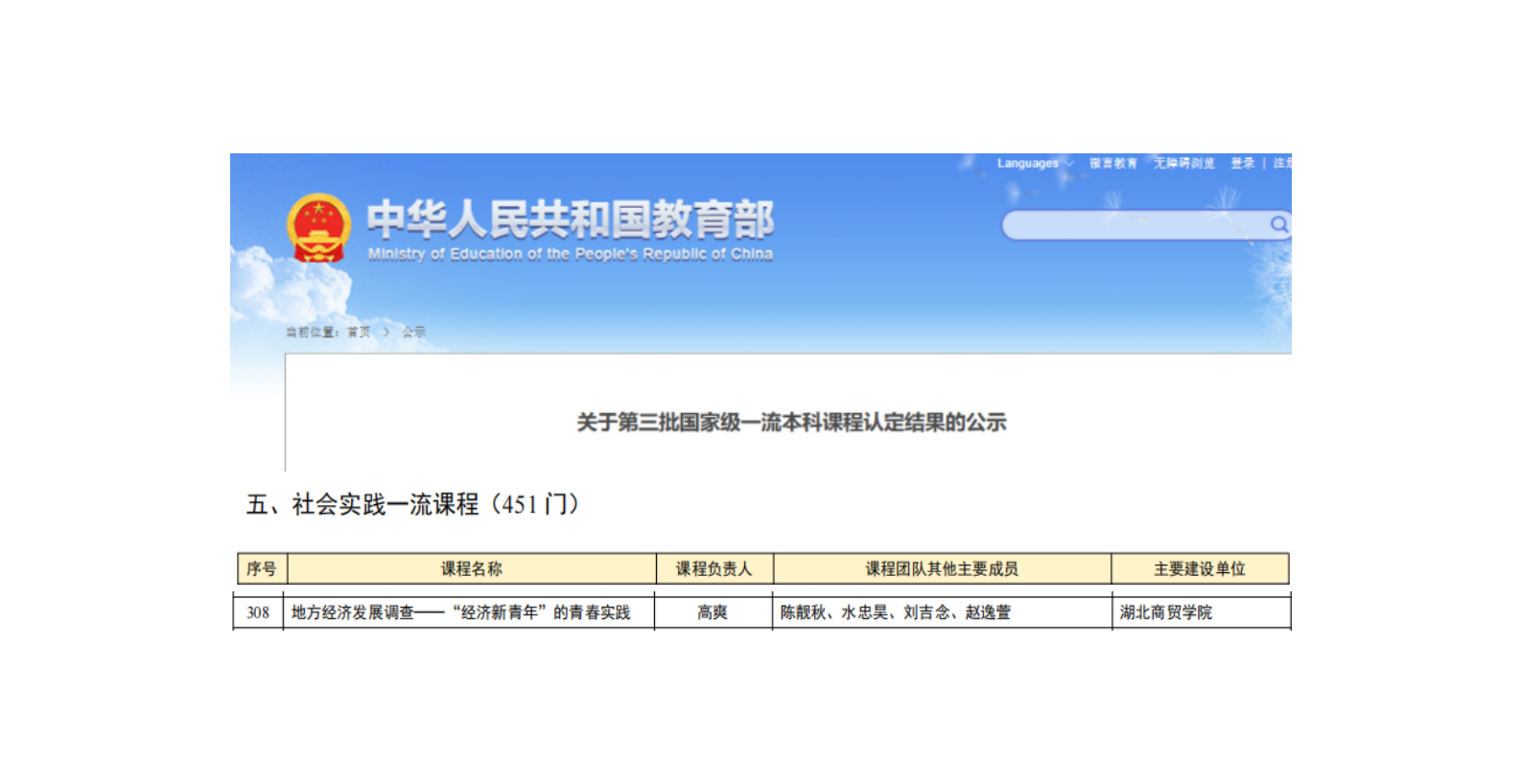 8月21日,教育部公示第三批国家级一流本科课程认定结果,beat365英国官网网站高爽老师主讲的《地方经济发展调查——“经济新青年”的青春实践》成功入选“社会实践一流课程”。这一成果不仅是公司课程建设的重大突破,更实现了公司在国家级一流本科课程领域的“零的突破”,标志着公司的教学改革与课程建设迈入新阶段。