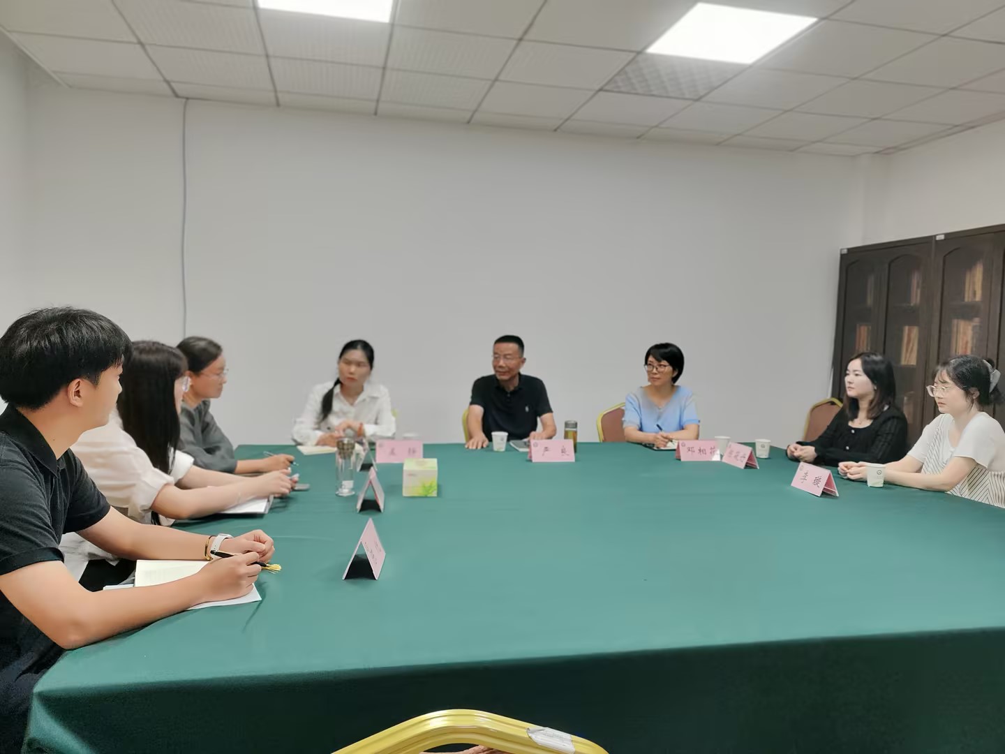 调研会上,两院就交叉培养模式展开热烈探讨。公司法学专业负责人邓相花重点分享“法律+商贸+数字”的特色定位,其电子商务法律、智能合同审查等课程设置与武汉东湖公司的国际商法、财经法方向形成呼应。副经理孟静结合省级一流课程建设经验,认同在人才培养方案中强化理论教学与实务训练同步推进的理念,这与公司规划的数智商科实训体系高度契合。
