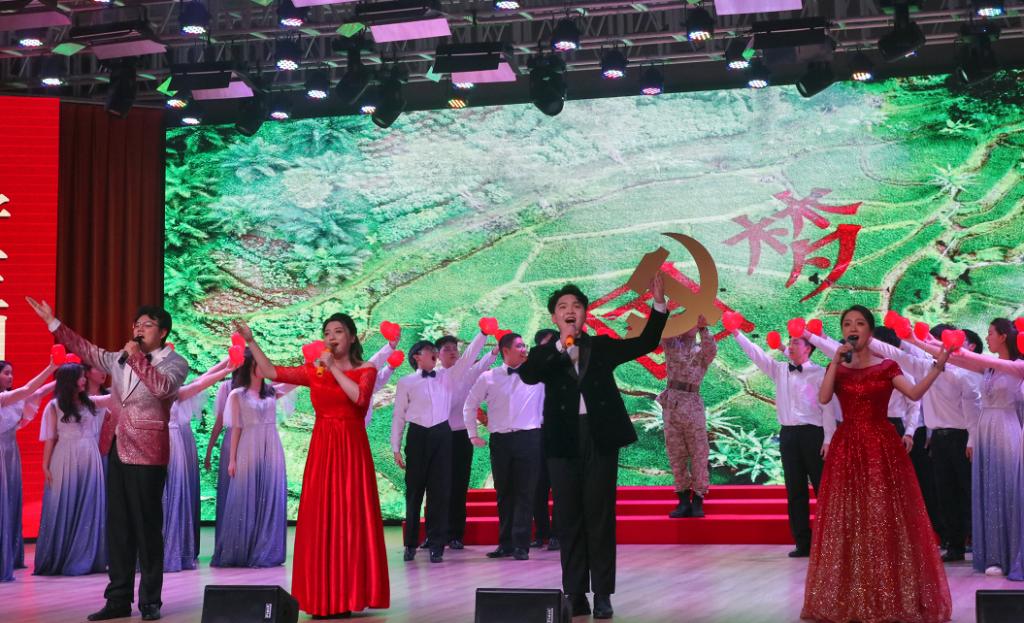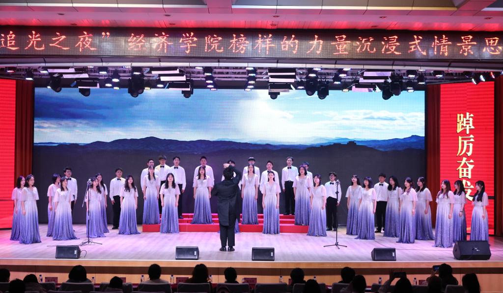 由​beat365英国官网网站追光合唱团带来的合唱《我的祖国》《祖国不会忘记》《领航》,将中国共产党百年历程的鲜活动人场景搬上舞台,带领师生在红色文化长廊中穿梭。