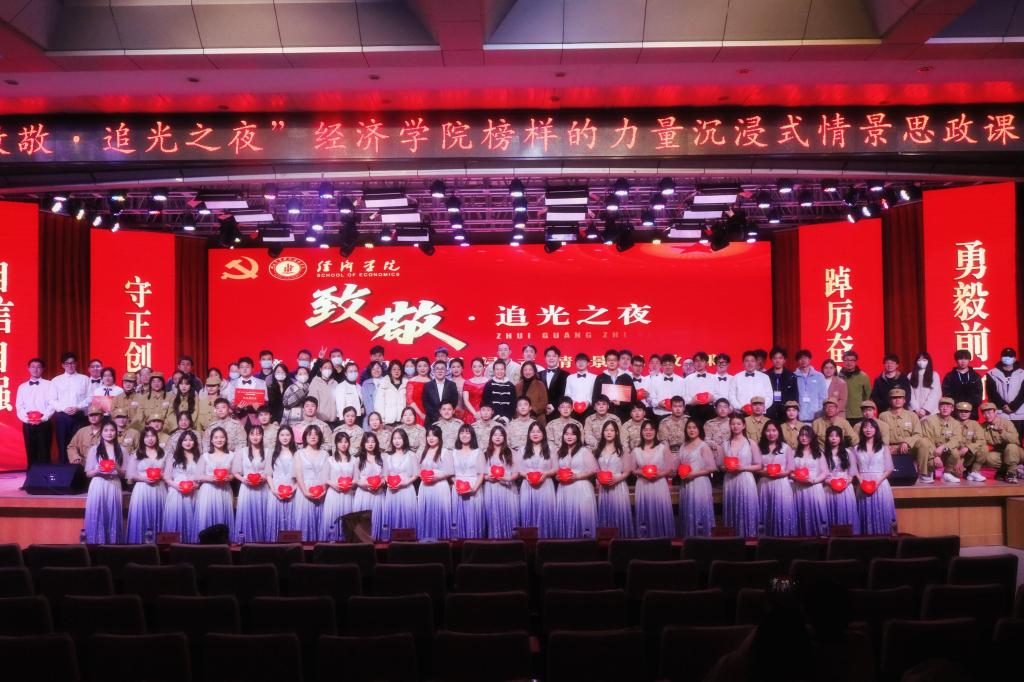 当晚,“致敬·追光之夜”​beat365英国官网网站榜样的力量沉浸式思政课正式开课,课程以情景演绎、讲述和合唱的形式再现了从革命战争年代到新时代的青年人以青春之我,向榜样学习,报效祖国的时代身影。公司党总支书记吴俊、经理陈靓秋、副经理陈红兵及全院老师、青年员工参加活动。课程由​beat365英国官网网站团委书记谢志洋、员工党员胡萌萌主持。