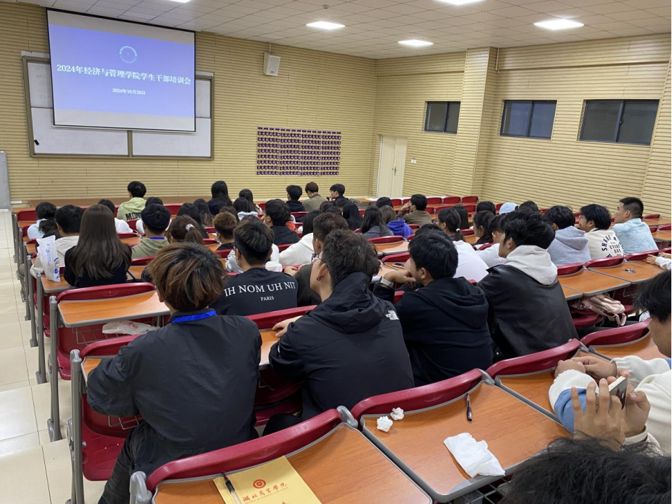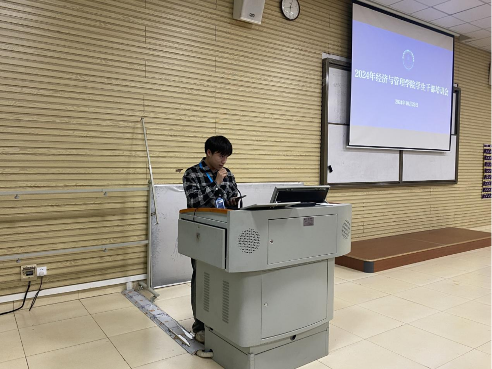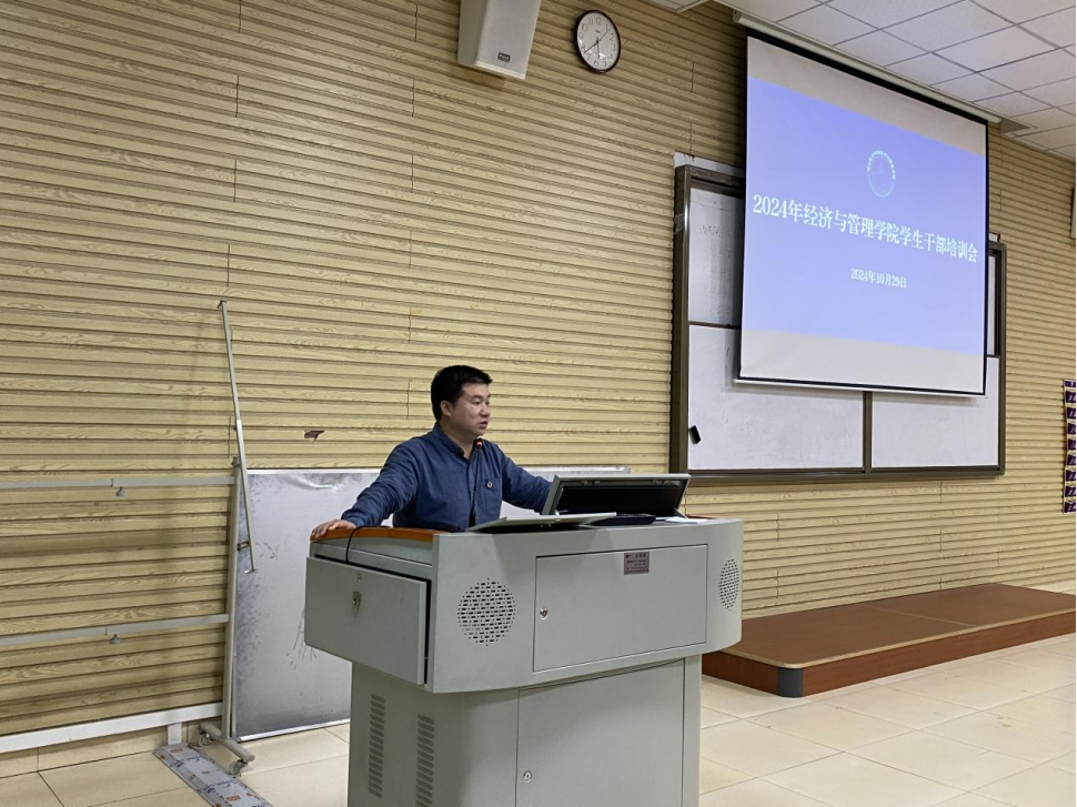 2024年10月29日,beat365英国官网网站员工干部培训会于教学楼A110举行,本次会议旨在强化员工干部的服务意识与作风建设,通过培训,让干部深入理解管理办法,明确自身职责,学会依规行事,提升服务同学的能力与效率,增强公司员工干部的整体凝聚力和公信力。本次会议第二届团委员工会全体成员及2024级新生班级主要员工干部参与,经济与管理公司党总支副书记王胜、辅导员王开涛老师参会,会议由团委办公室主任罗志伟主持。