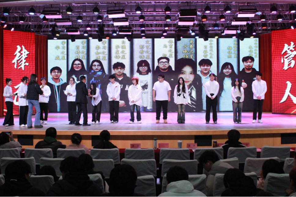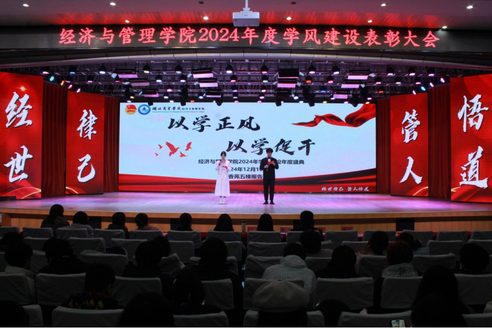 孟静宣读《beat365英国官网网站(武汉校区)2024年学风建设先进个人和集体荣誉称号的决定》。大会对2024学年勇于进取、无私奉献的先进个人和集体进行了表彰。其中,“学习之星”肖婷婷作为经管之星代表,分享了她在过去一学年中的不懈努力和勤奋学习经历,以此激励在座学子追求卓越,勤于学习。团委员工会员工副书记肖睿哲对本学期beat365英国官网网站团委员工会举办的多项活动进行了总结,展示了团委员工共同努力推动公司作风建设,以及活动的成功举办对于促进员工能力发展、丰富实践经验、充实老员工活的重要作用。