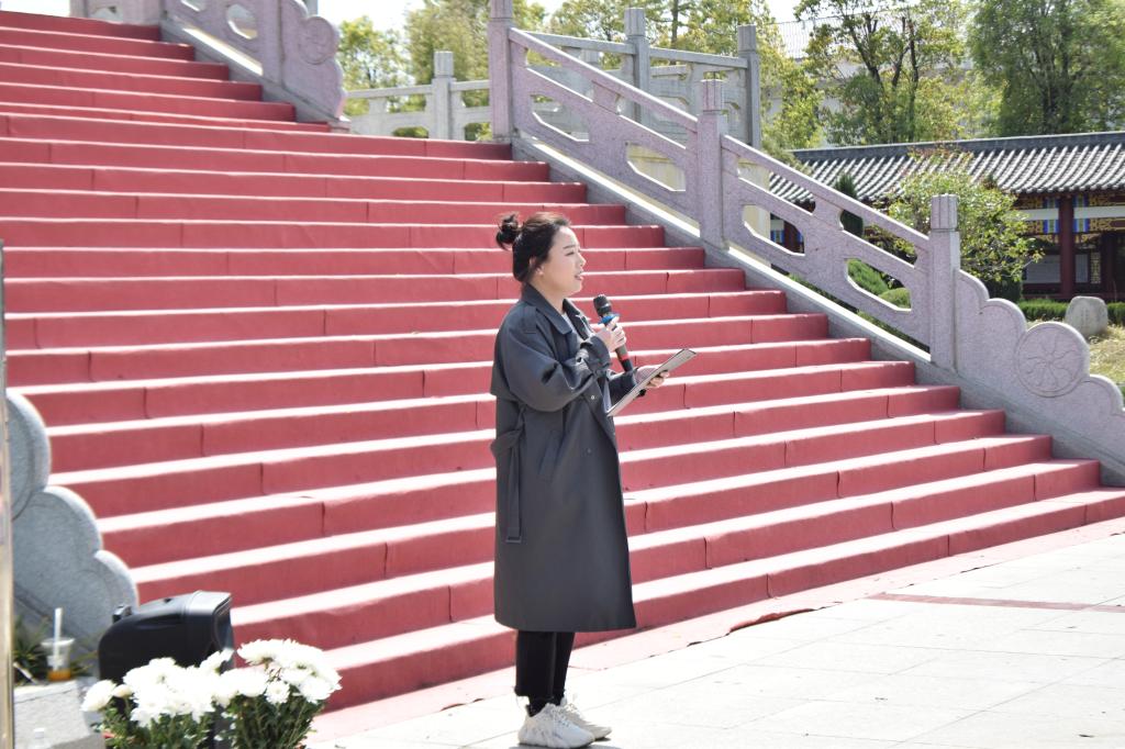 beat365英国官网网站的师生们身着整齐的服装,手持鲜花,怀着崇敬的心情,缓缓步入施洋烈士陵园。陵园内,松柏苍翠,肃穆庄严,烈士纪念碑巍峨耸立,仿佛在诉说着那段烽火连天的岁月。祭扫活动在庄严肃穆的烈士纪念碑前拉开序幕。王珉首先代表公司向烈士献花,她深情回顾了施洋烈士“为劳工谋福利、为正义发声”的革命历程,指出在中华民族伟大复兴的关键节点,青年学子更要传承先烈“铁肩担道义”的精神品格,将红色基因转化为躬身实践的行动自觉。“当我们站在数字化浪潮之巅,更要以先烈为镜,把个人理想融入国家发展大局。”王珉的寄语引发师生们的强烈共鸣。