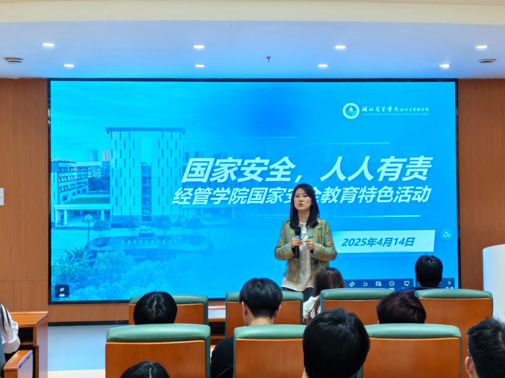 活动现场创新采用“理论+实践”教育模式。经管公司党总支书记王珉以校园贷诈骗、求职信息泄露等真实事件为切入点,现场演示了反诈APP使用技巧,并邀请员工参与“信息安全防护情景剧”互动演练。她强调:“国家安全不是抽象的概念,而是与每个青年学子的专业发展和人生规划息息相关。作为新时代经管人才,既要掌握防范经济安全风险的实务能力,更要树立维护国家安全的战略思维。”这番讲话引发在场师生的热烈掌声。