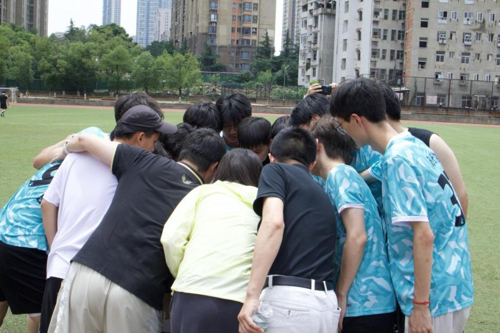 场上的激烈对抗也点燃了看台上观众的热情。各院系同学为足球队员们加油呐喊助威,用整齐的口号和有节奏的掌声为球员们加油助威。每当场上出现精彩场面,看台上都会爆发出热烈的欢呼声和掌声。