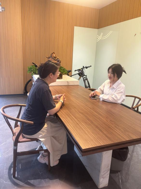 抵达企业后,公司运营外协部组长潘曼对孙老师的到来表示热烈欢迎。潘曼详细介绍公司的发展历程、当前规模、电商业务以及用人标准等内容。