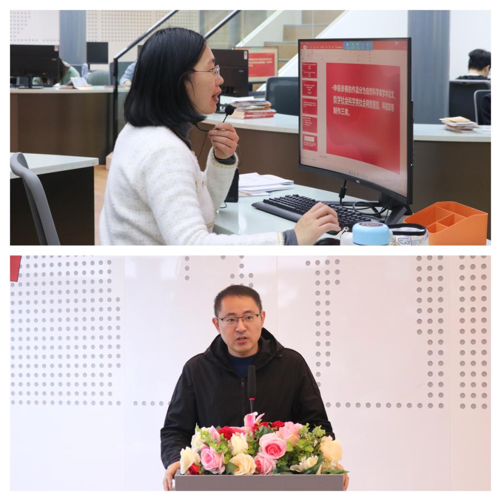 高爽首先向大家介绍了本届比赛的参赛资格和申报要求。她表示,公司在往年比赛中多次取得优异成绩,希望全院师生再接再厉,在本届比赛中争创佳绩。崔北庆就公司竞赛方案及比赛时间节点进行了详细说明,他对各位同学高度重视“挑战杯”竞赛给予充分肯定,他激励全院员工勇敢挑战自我、不断创新,积极投身学科竞赛,争取在本次“挑战杯”竞赛中取得更优异的成绩。