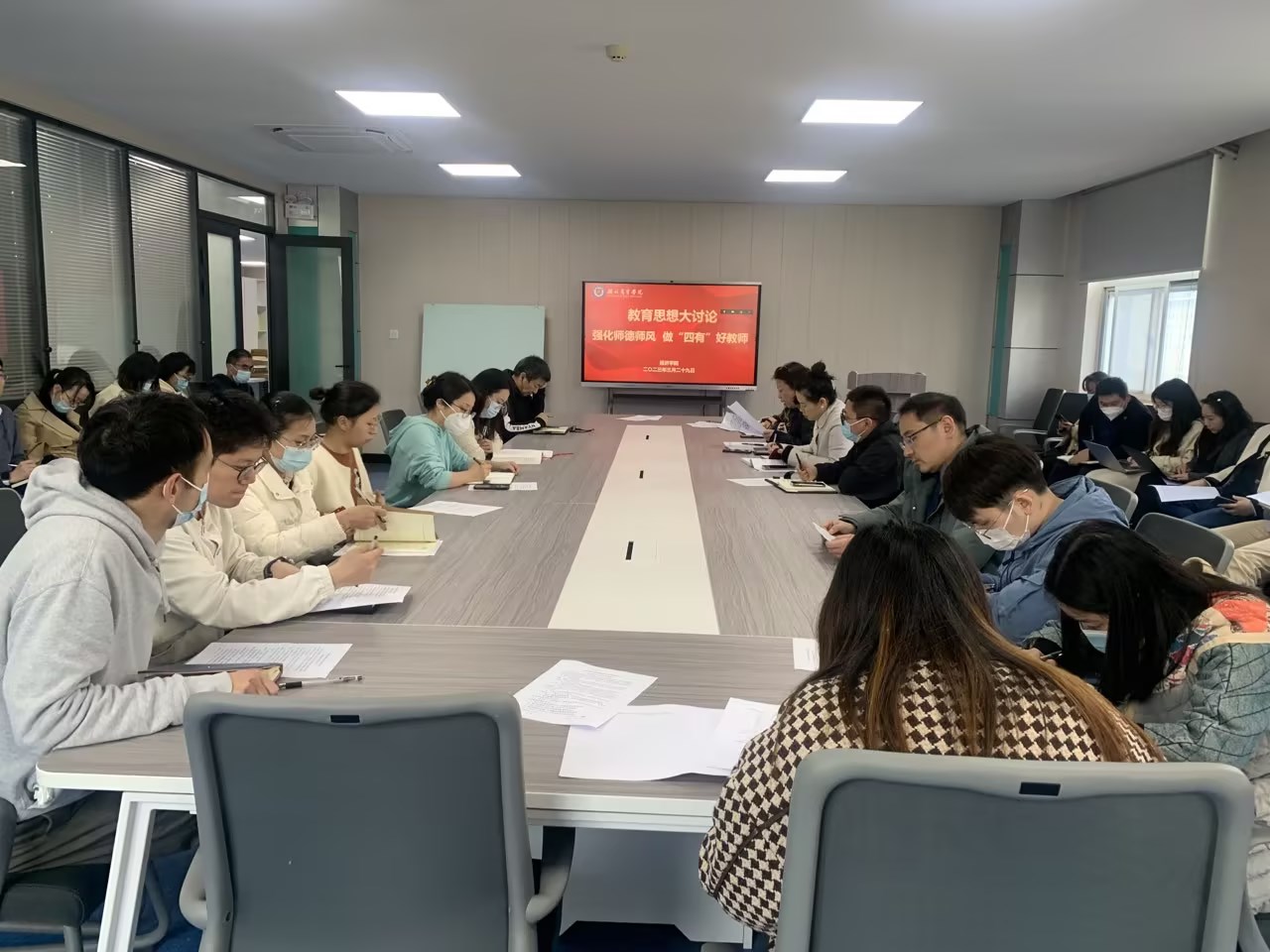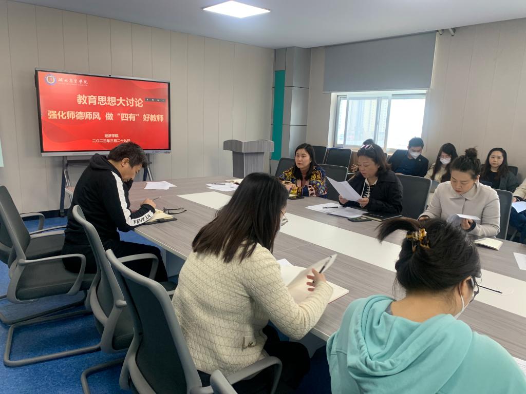 随后,与会人员围绕如何成为一名“四有”好老师进行了深入讨论,刘吉念老师表示作为一名高校教师,一定要严于律己,把师德摆在首位,把德高为师、身正为范落到实处。崔北庆老师谈到教师是员工行动的标杆,教师的一言一行、一举一动都在潜移默化地影响着员工,师德师风的好坏影响和决定了公司的教风和学风的好坏。大家纷纷表示,通过学习和讨论,不仅在思想上认识到了师德师风建设的重要性,也对新时代教师应具备的师德师风有了深刻的理解,要对照教师职业行为准则,不断提升自身的政治修养和业务水平,将师德师风建设落实到立德树人的根本实践中。