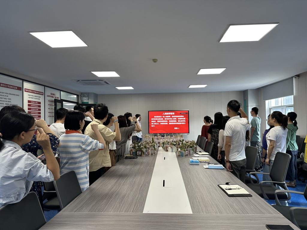 最后公司青年博士水忠昊带领全体教师宣誓,重温人民教师誓词。