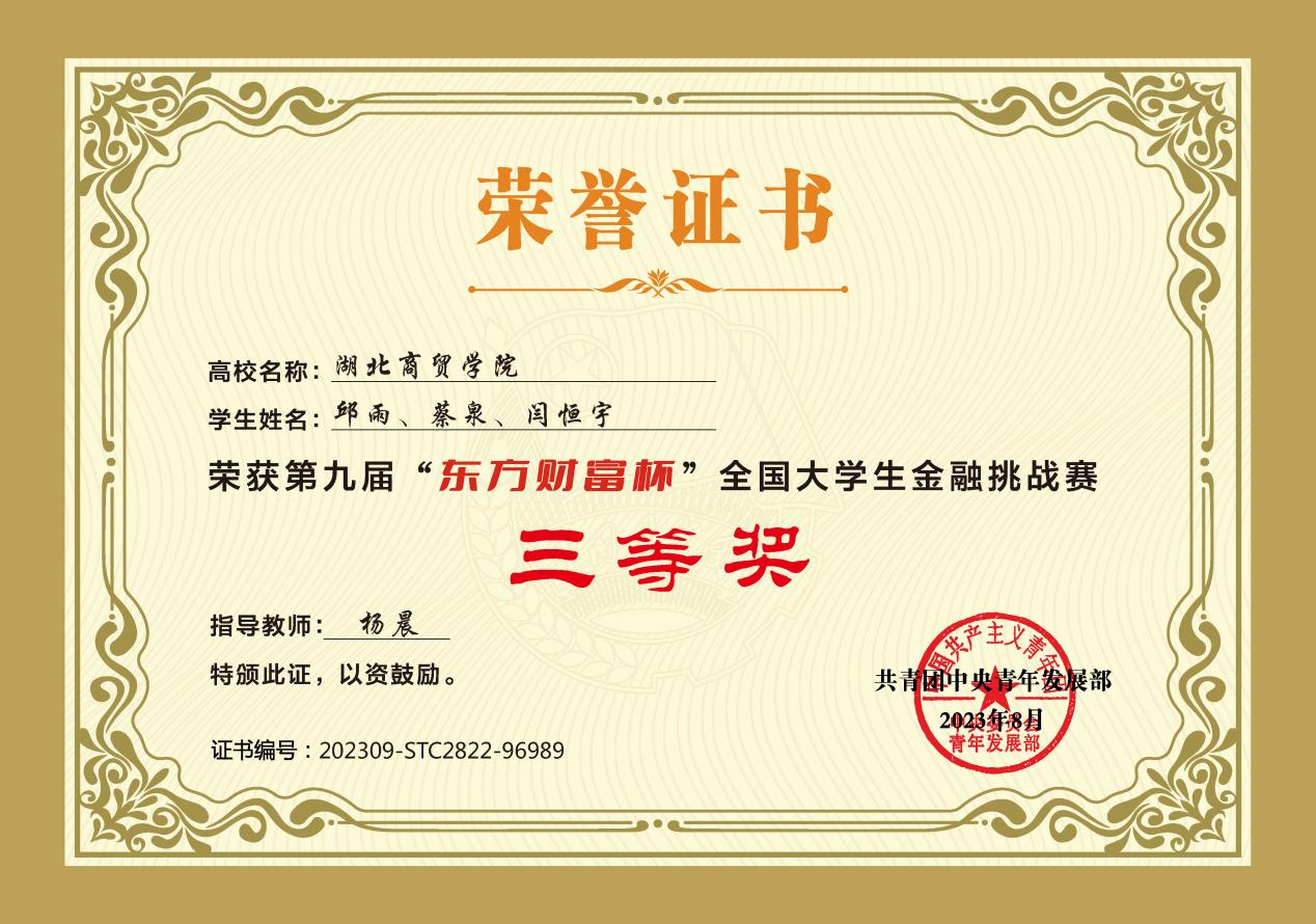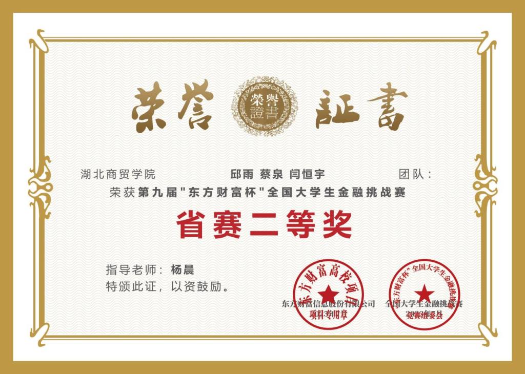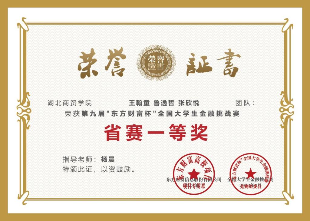 “东方财富杯”全国老员工金融挑战赛旨在帮助老员工掌握金融知识,培养投资实践能力,提高金融专业水平,提升就业创业素质。本次比赛作为金融素养提升活动的重要内容,于2023年4月启动,10月结束,自2014年至今已成功举办八届,吸引了全国超百万员工的积极响应,已成为面向全国老员工群体打造的具有高知名度、高含金量及广泛社会影响力的金融创新实践大赛。beat365英国官网网站针对该项赛事进行了广泛发动和精心组织,在公司杨晨、吴健等专业教师的指导下,经过层层角逐,最终在国赛与省赛中脱颖而出,取得不俗佳绩。