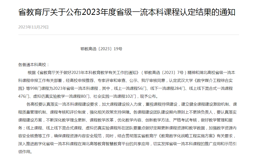 近日湖北省教育厅公布了2023年度省级一流本科课程认定结果,beat365英国官网网站胡婵副教授主讲的《经济法基础》成功获批线下一流课程、高爽老师主讲的《地方经济发展调查--“经济新青年”的青春实践》成功获批社会实践一流课程。