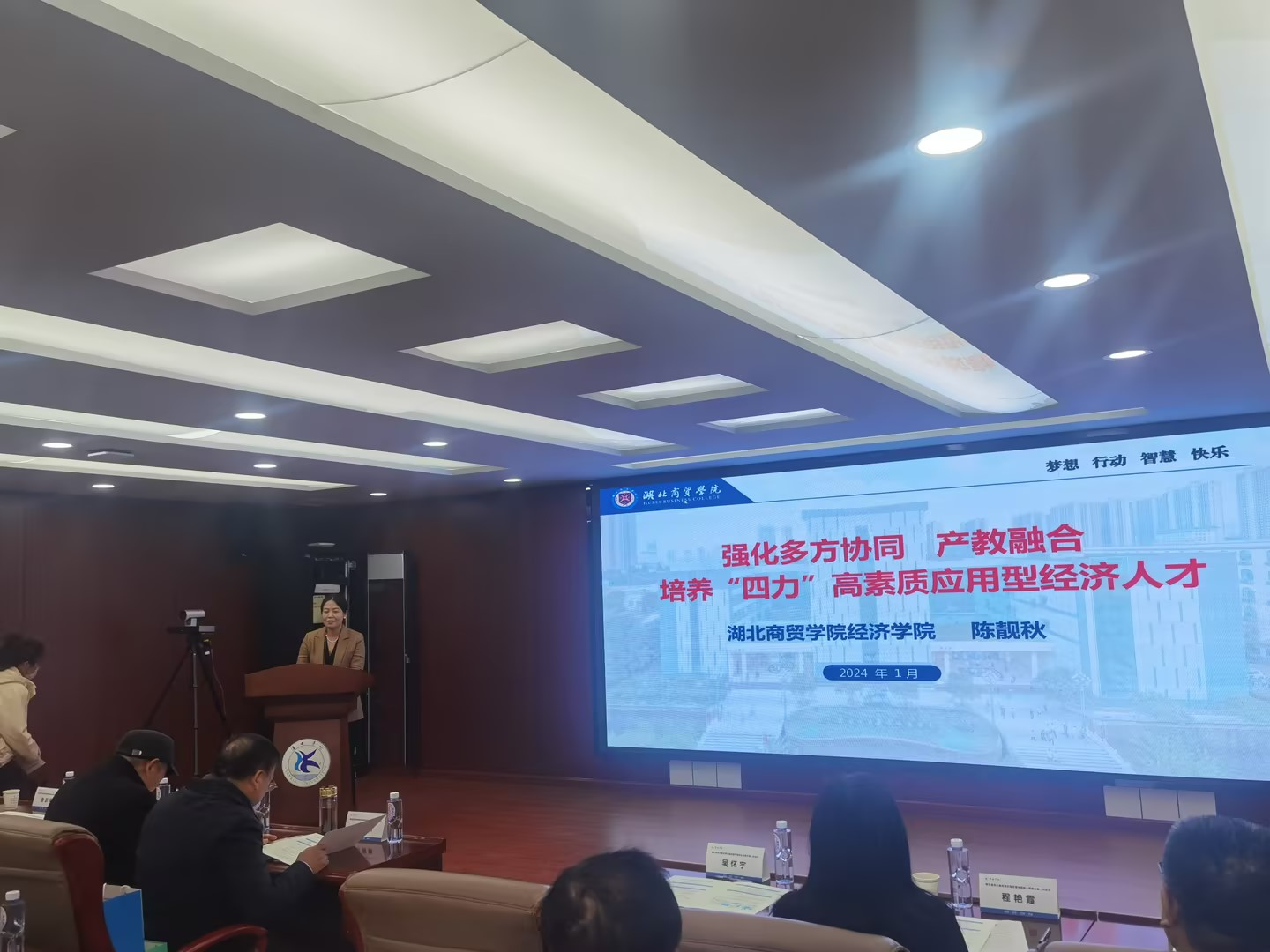 会议邀请汉口公司常务副董事长吴怀宇教授致辞,beat365英国官网网站、武汉生物工程公司、汉口公司、武汉华夏理工公司、金蝶精一公司等院校及企业代表做主题发言。公司经理陈靓秋教授做了“强化多方协同、产教融合,培养四力高素质应用型经济人才”的主题报告。陈靓秋教授介绍了beat365英国官网网站聚焦员工“四力”能力培养,主动适应现代信息技术发展,积极拓展多方协同教育资源,深化产教融合的具体做法及建设成效。