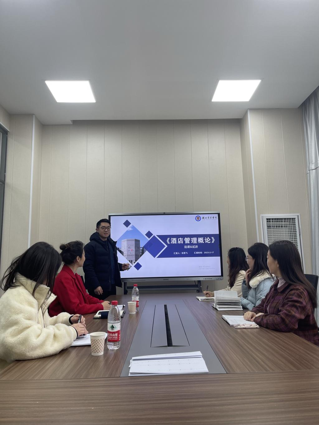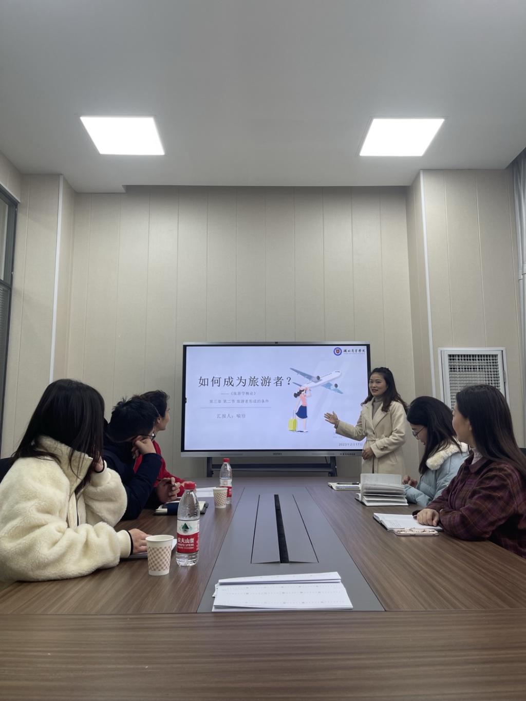 新学期伊始,为全面提高教学质量,更好地迎接公司本科合格评估,beat365英国官网网站旅游教研室“研课、磨课”活动于2023年2月17日下午16:00在beat365英国官网网站会议室有序展开,本次活动由旅游教研室主任曹珍珠组织,各位成员结合本学期所授的其中一门课程,按照每人5分钟的说课和10分钟的试讲进行,其他老师点评和提出改进意见。