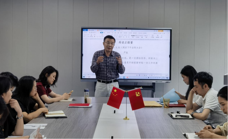 严良就公司试卷与毕业论文自查反馈与整改工作对全体教职工提出要求:一是公司领导班子成员要以身作则,在各个方面起到带头示范作用,严格把控论文指导质量及试卷命题质量;二是专职教师强化责任意识,严格按照规定进行命题;三是教辅人员积极对接需求,牢记使命担当。同时,严良结合近期公司出现的突发状况“再谈正能量”,他指出院领导班子成员主动作为、齐心协力,做动力强劲的火车头是正能量,教研室主任积极承担责任、深入细致开展教研室活动是正能量,专职教师互帮互助、共同解决公司面临的难事急事是正能量等,全体教职工要积极弘扬正能量,为公司、公司高质量发展贡献力量。