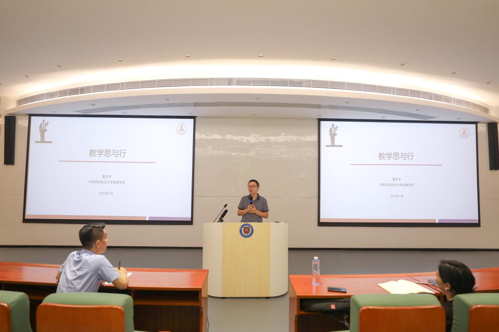 2023年7月6日上午,中南财经政法大学金融公司副教授董志华坐客公司“经济讲坛”,给老师们带来了“优化教学设计,打造高效课堂——一流课程建设的思与行”主题讲座。
