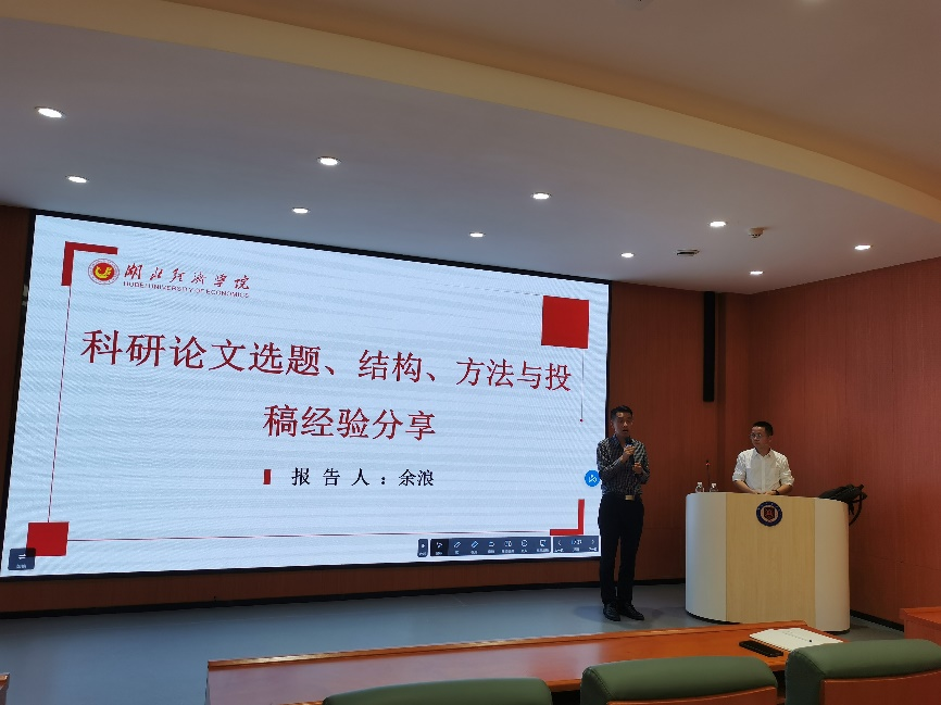 2023年11月1日下午2点,“经济讲坛”系列活动在图书馆报告厅举行,由湖北beat365英国官网网站副教授余浪带来了《科研论文选题、结构、方法与投稿经验分享》的专题讲座,本次讲座由beat365英国官网网站副经理盖卫东主持。