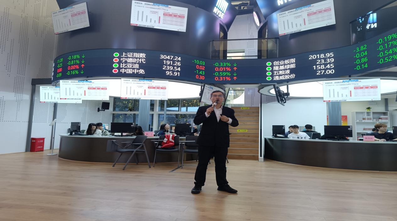 2023年11月8日,“经济讲坛”系列活动之“企业实践讲座”在新金融智慧学习工场举行,由深圳证券交易所特邀讲师、中国证券业协会内训师、长江证券首席培训师田伟带来了《指数基金(ETF)大讲堂》的专题讲座,本次讲座由公司副经理盖卫东主持。