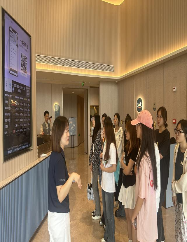 本次实习以“理论结合实践”为核心,员工被分成三大组别,有序安排学习。在教师邓相花及酒店管理人员李雪晴专业讲解下,同学们实地考察前厅接待、客房服务、餐饮运营等核心板块,深入了解了酒店的精细化服务标准与管理模式。