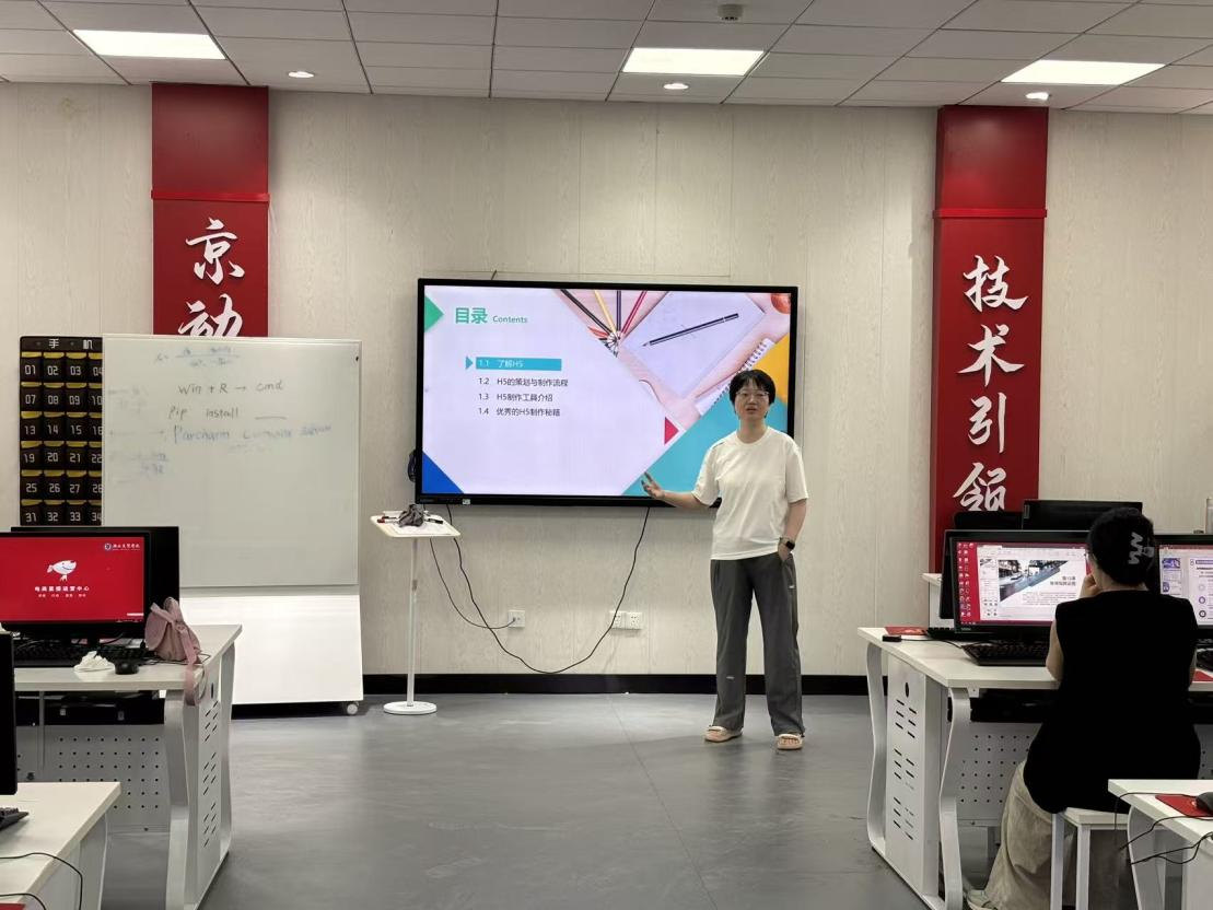随后,磨课环节有序展开。肖晓老师率先示范,讲授了《H5设计与制作》课程。她深入剖析了H5策划与制作的流程,并详细介绍了常见的H5制作工具,为后续的实践教学提供了清晰的思路和实用的指导。