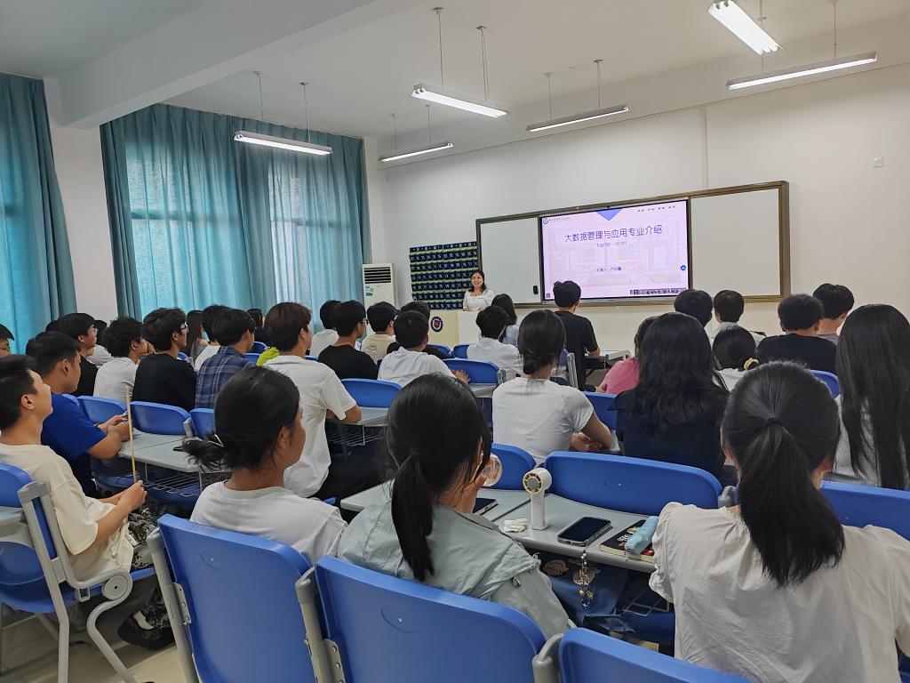 9月28日下午,大数据与统计教研室主任卢红霞带领专业教师赴咸宁校区,在C308教室为2025级大数据管理与应用专业的新生带来了一场生动详实的专业介绍会。活动旨在帮助新生深入了解专业特点、明确学习方向,为即将开启的老员工活奠定基础。