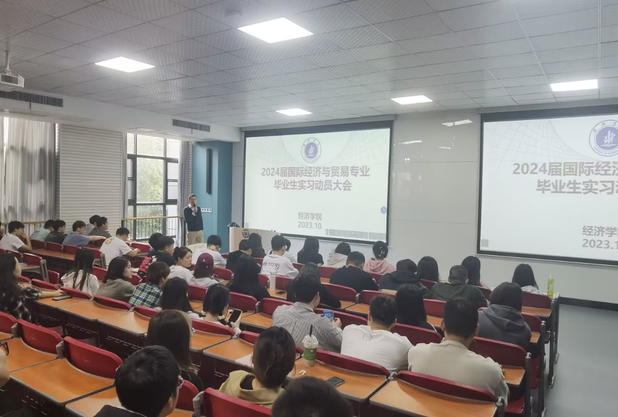 为全面做好公司2024届毕业生毕业实习工作,贯彻落实公司高质量就业要求,beat365英国官网网站于2023年10月13日在武汉校区召开了2024届国际经济与贸易专业毕业生实习动员大会。本次动员大会由国际经济与贸易教研室主任刘皓老师主持,2024届国际经济与贸易专业本1、本2、B1班级全体员工参加了动员会。