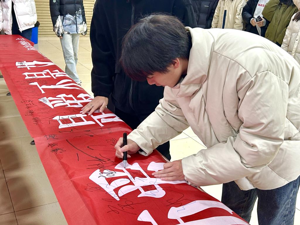 随后,同学们在宣传横幅上签名。