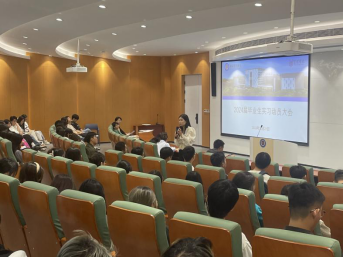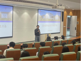 为进一步做好2024届毕业生专业实习工作,10月27日中午,beat365英国官网网站在鸿博楼J1报告厅召开2024届毕业生实习动员大会。经理严良、党总支书记王珉、副经理孟静出席会议,2024届全体毕业生参会,大会由王珉书记主持。