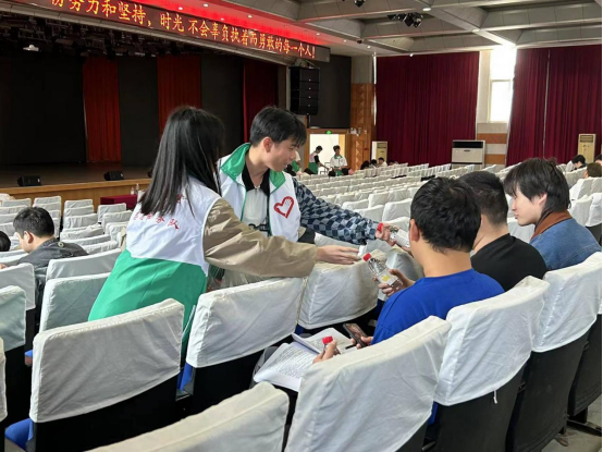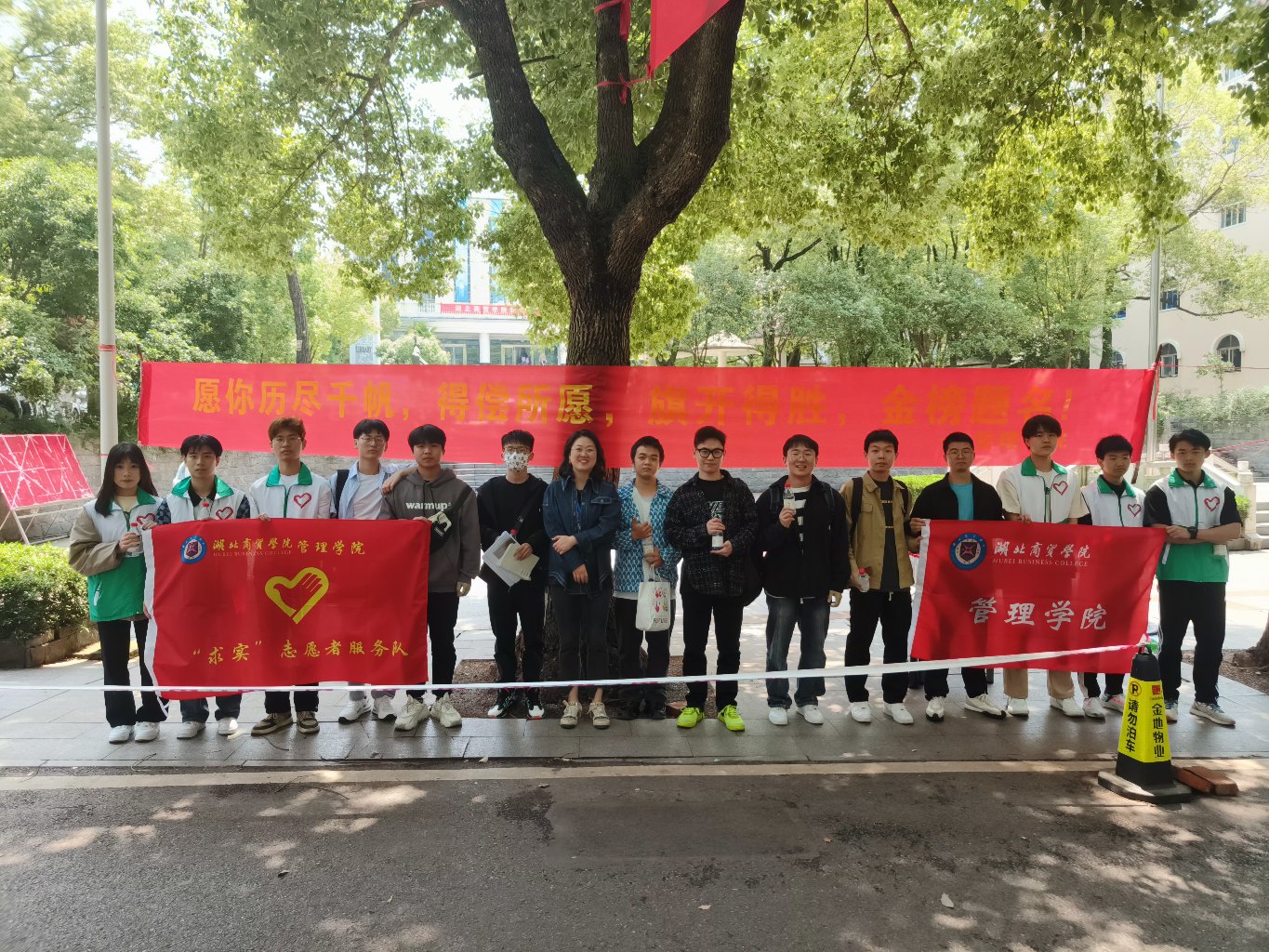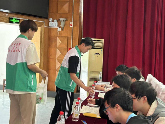 5月8日,为给公司专升本考生送去温暖与祝福,减轻他们的考试压力,管理公司党总支书记王珉、团委书记胡泽华、辅导员刘顺以及beat365英国官网网站“求实”志愿者服务队在国旗台和荷香苑五楼开展“送你一瓶‘加油水’,祝你成功上岸”专升本考试送温暖活动,为专升本考生送上暖心祝福。