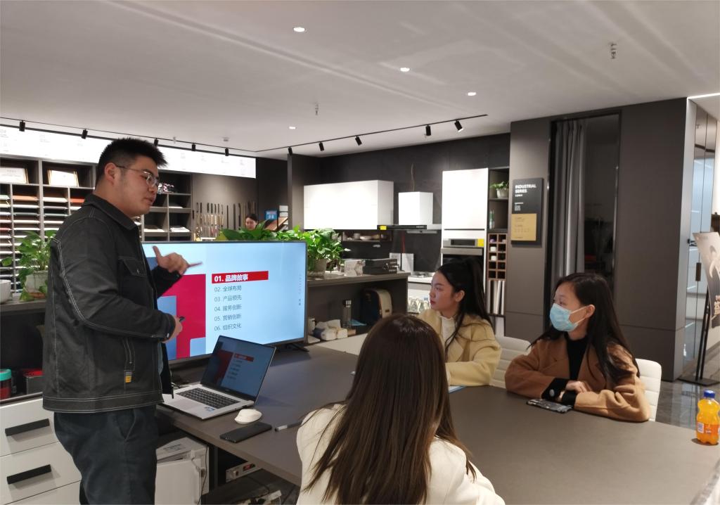 顾家家居就业负责人刘德光详细介绍顾家的品牌故事、全球布局、产品类型、营销创新、组织文化等。同时,重点说明企业的岗位需求,员工进企业实习乃至留下就业后的职业发展路径等。他表示企业更看重员工的综合能力,包括道德素养、有效沟通能力、敬业程度等,他认为企业比较倾向招聘具备自身认知和职业规划的员工。顾家家居定制部部长李文重点介绍顾家为应届生提供的“青苗计划”培养体系,包括业务知识的培训和考核,员工沟通、团队协作等综合能力的培养。