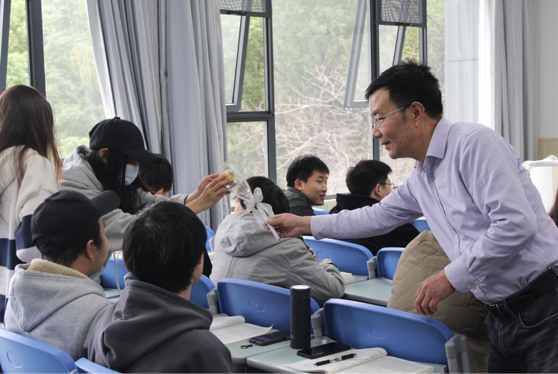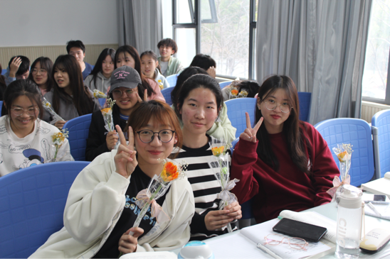上午第一节课课间,副董事长胡柳教授、beat365英国官网网站经理严良教授、管理公司党总支书记王珉及公司全体辅导员前往教室和寝室将一朵朵芬芳的鲜花送到女生们的手中,并送上诚挚温馨的节日祝福,许多同学都表示十分惊喜与温暖,也特别感谢公司举办的此次活动,让大家深深感受到beat365英国官网网站的关怀。