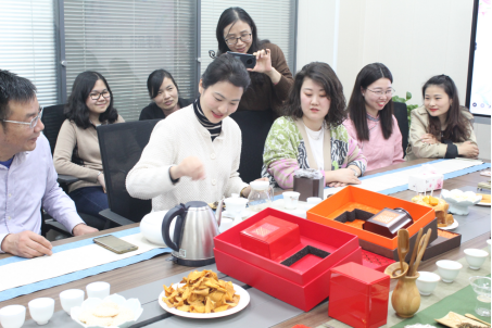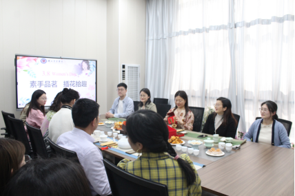 胡柳副董事长及管院全体女职工参加本次活动,此次活动共分为两个部分,第一部分是“品茗”,第二部分是“插花”。