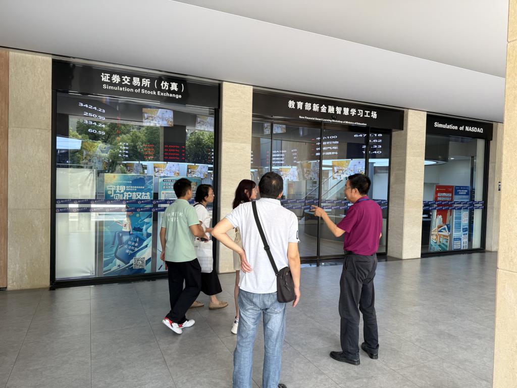 (图为严良经理带领考生参观新金融智慧学习工厂)